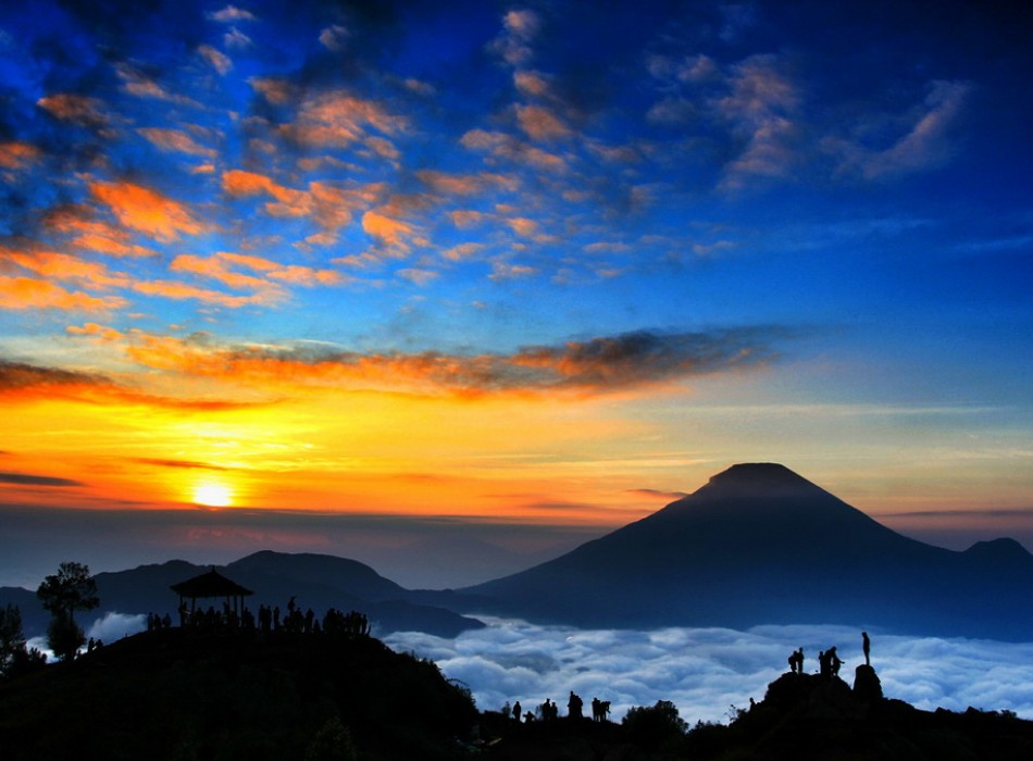 We bring you to Wonosobo where you will pass  mountain scenery as we travel through Sindoro - Sumbing Valley, passing  through tobacco & tea plantations. Then, be ready to pick up your  gear in hiking up to reach the peak of the Sikunir hill to enjoy the surrounding misty atmosphere while waiting for the  sunrise. At the top of the hill you will be able to see the view of at  least 4 high mountains in Central Java which are Mt. Merbabu, Mt.  Sindoro, Mt. Sumbing and Mt. Slamet if the weather permits. Next, we  will visit the popular crater (kawah) around Dieng Plateau which is the Sikidang Crater (Kawah Sikidang) then move on to Arjuna Temples Complex. Candi-candi (ancient temples) dotted around, the most famous being the  Arjuna complex not because of its magnificence, what not with the likes  of Borobudur and Prambanan not too far off but for its really old age.  Here you can find Candi Arjuna, Candi Setiyaki and Candi Bima. They are  one of the oldest temples in Indonesia, dating back to 8th century built  by the Sanjaya dynasty. It had stood the test of time for a long, long  time. Last but not least, the must visit attraction is to Telaga Warna (colored lake).  The name stands as the lake hues of blue and maybe some slight green.  Try to walk up the hill beside it to catch a top view of the lake which  can be quite beautiful if you caught it during the right light of day.